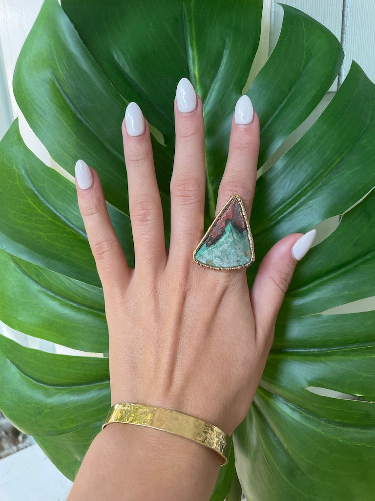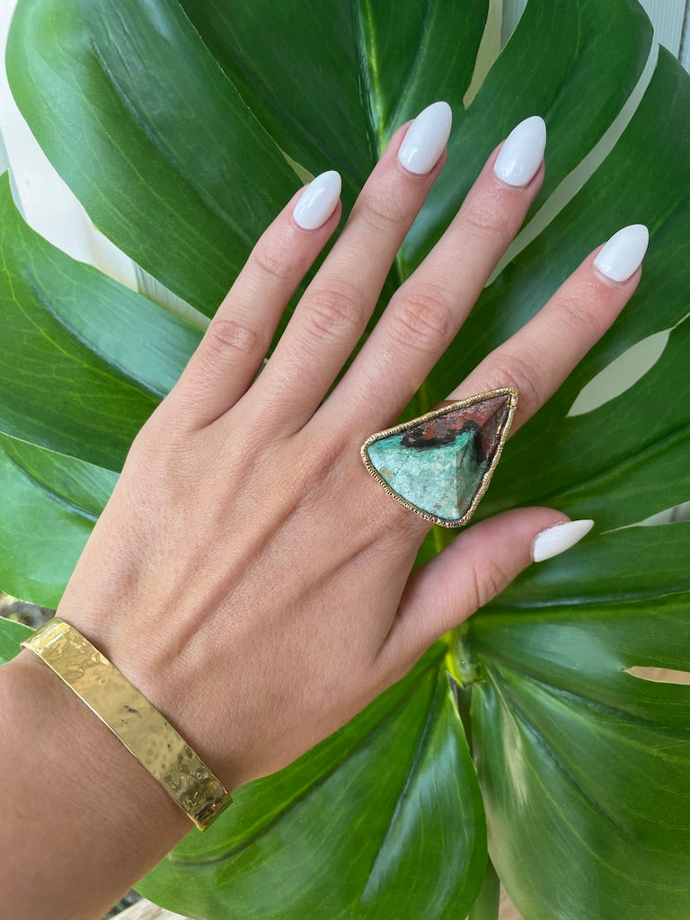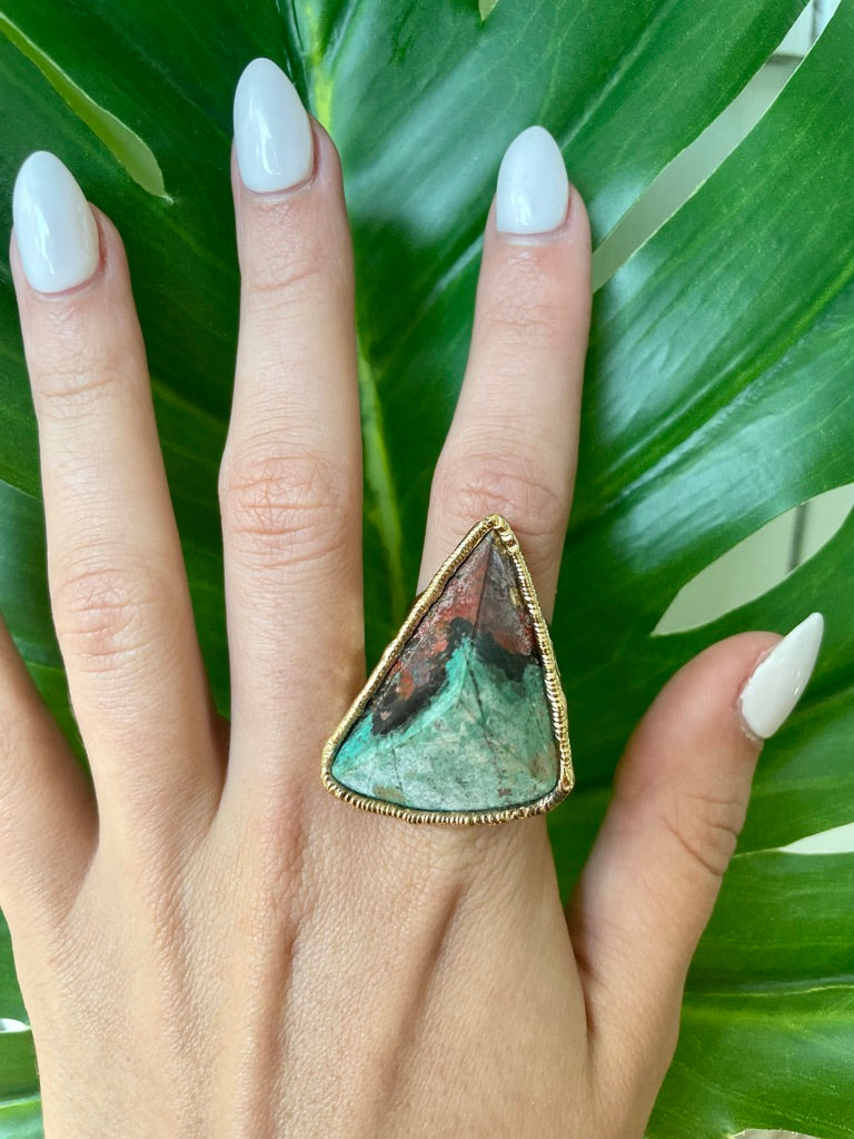This OOAK Jasper ring is sure to turn heads! Such a unique stone with a pyramid shape--absolutely gorgeous.
