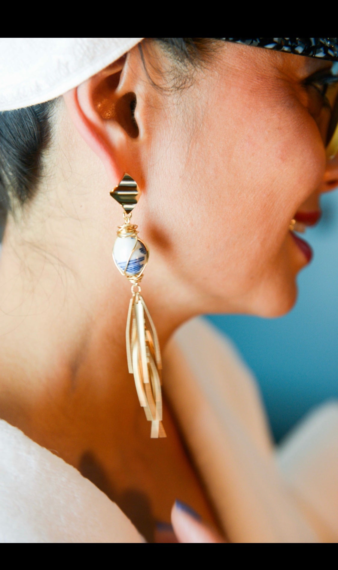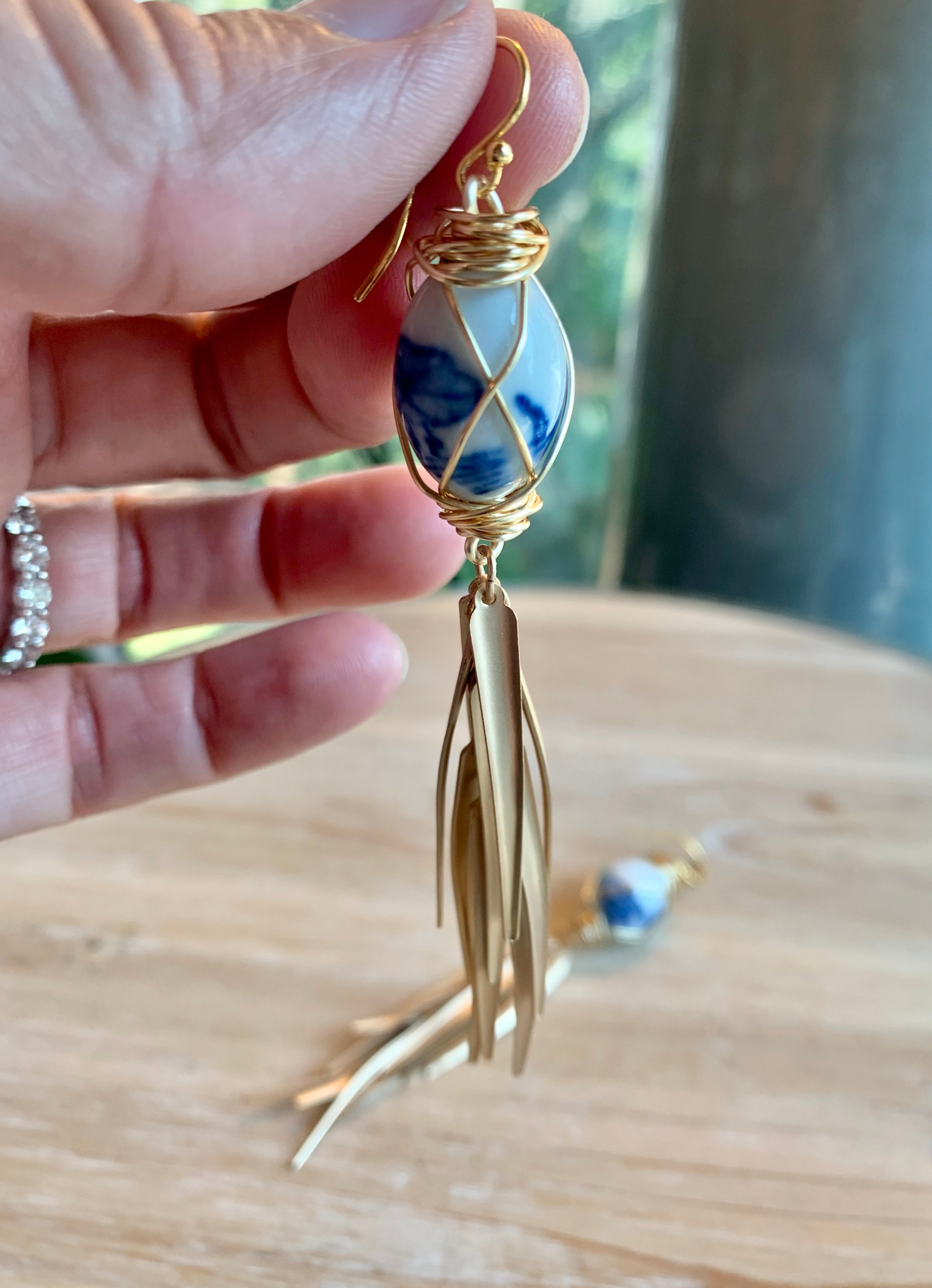 Vintage hand-painted porcelain, hand-wired and adorned with wispy dangles to make the perfect statement!