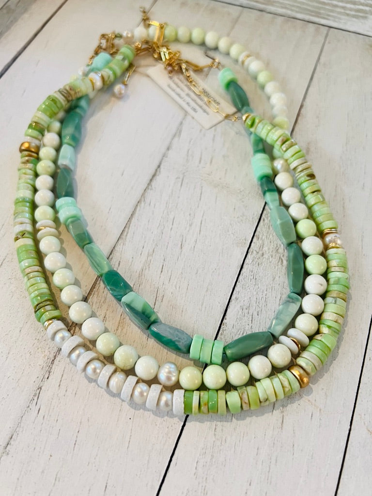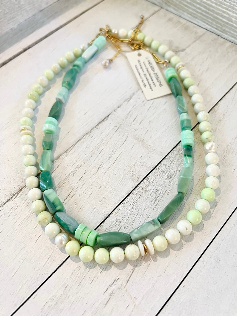 Our Green Opal necklace adds a fresh splash of color and so fun paired with our new Lemon Chrysoprase