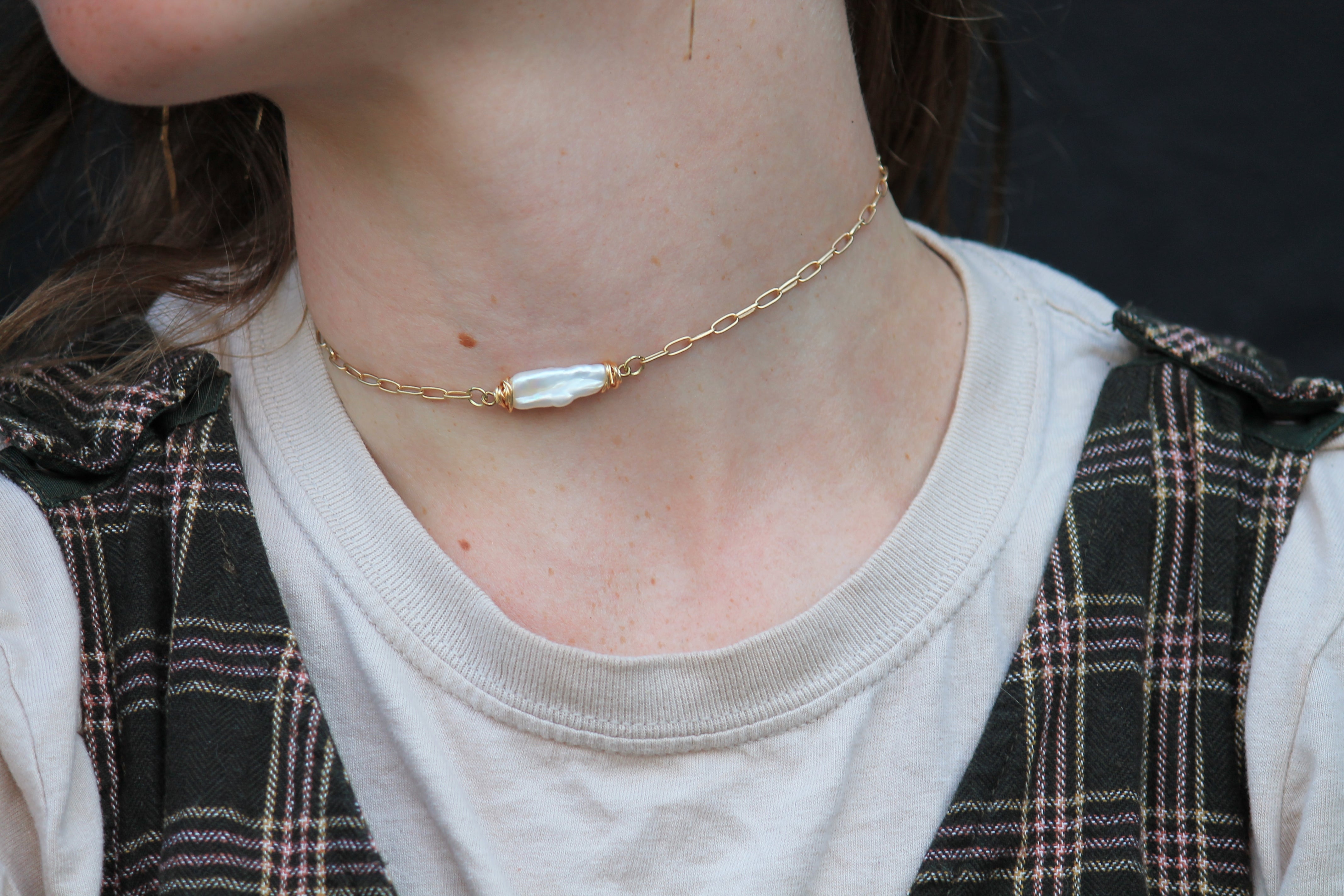 Hand-wrapped Freshwater Pearl on adjustable chain