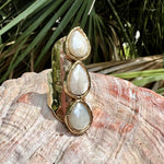 Gorgeous triple stack of Moonstone teardrops, adjustable for the best fit