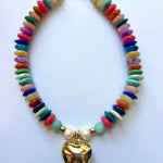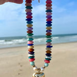One of Kind necklace designed with colorful beads including Freshwater Pearl, Amazonite, Resin and African beads
