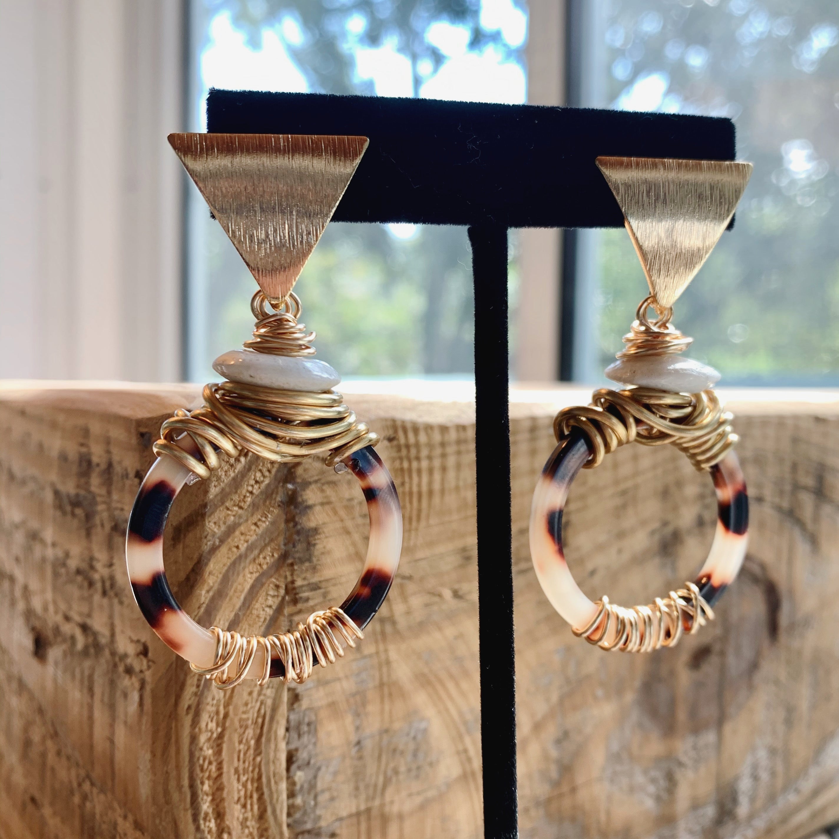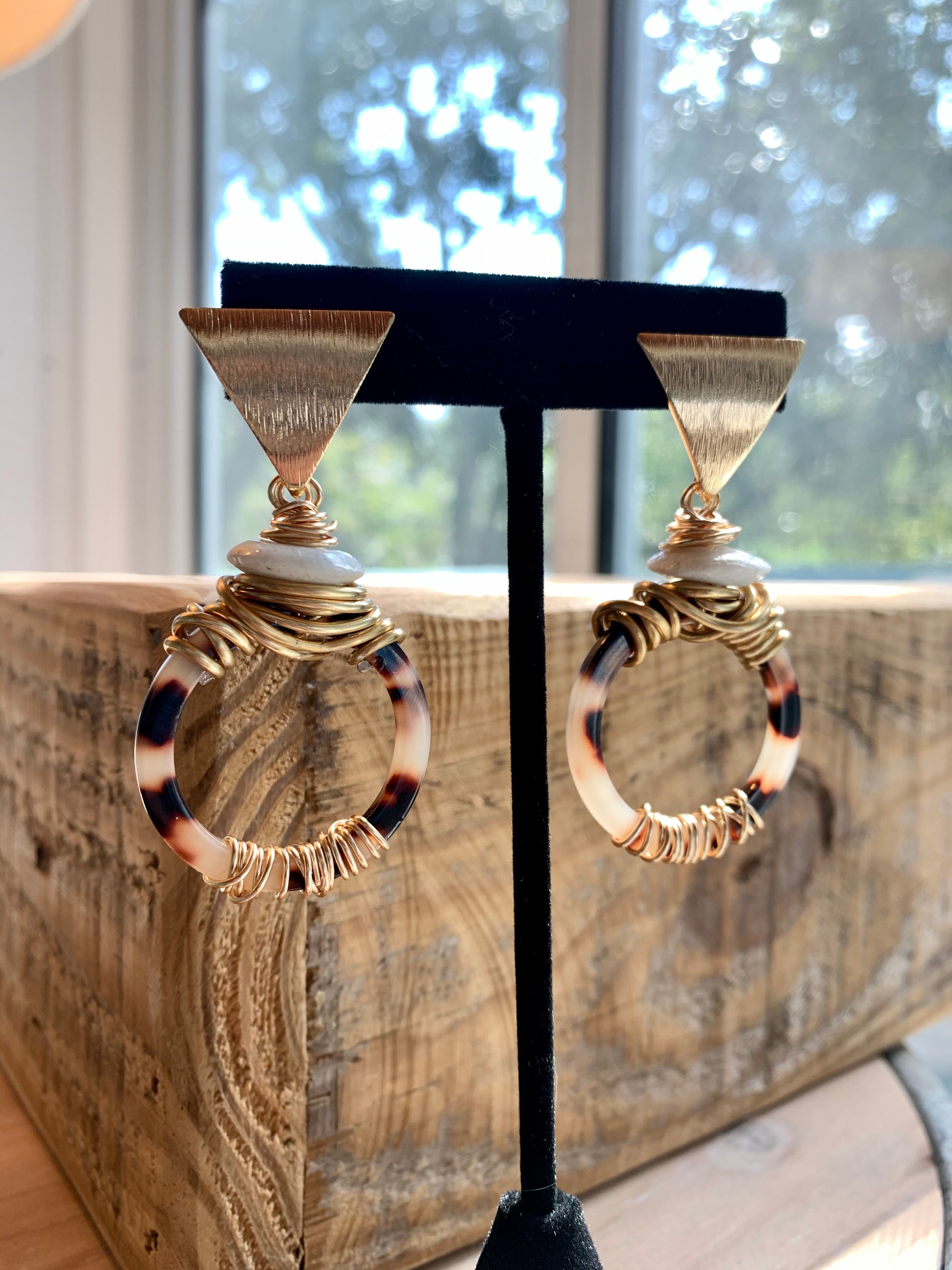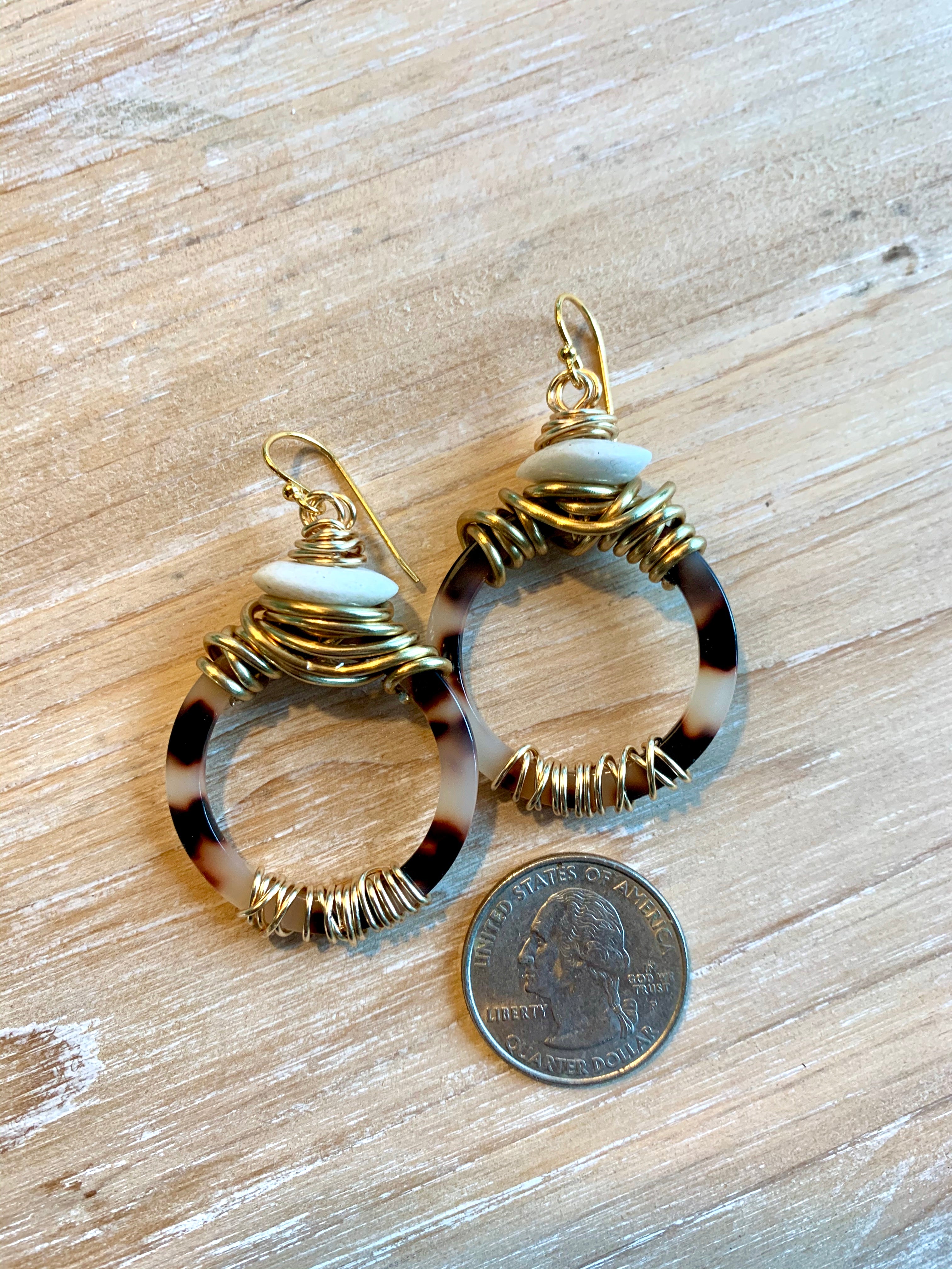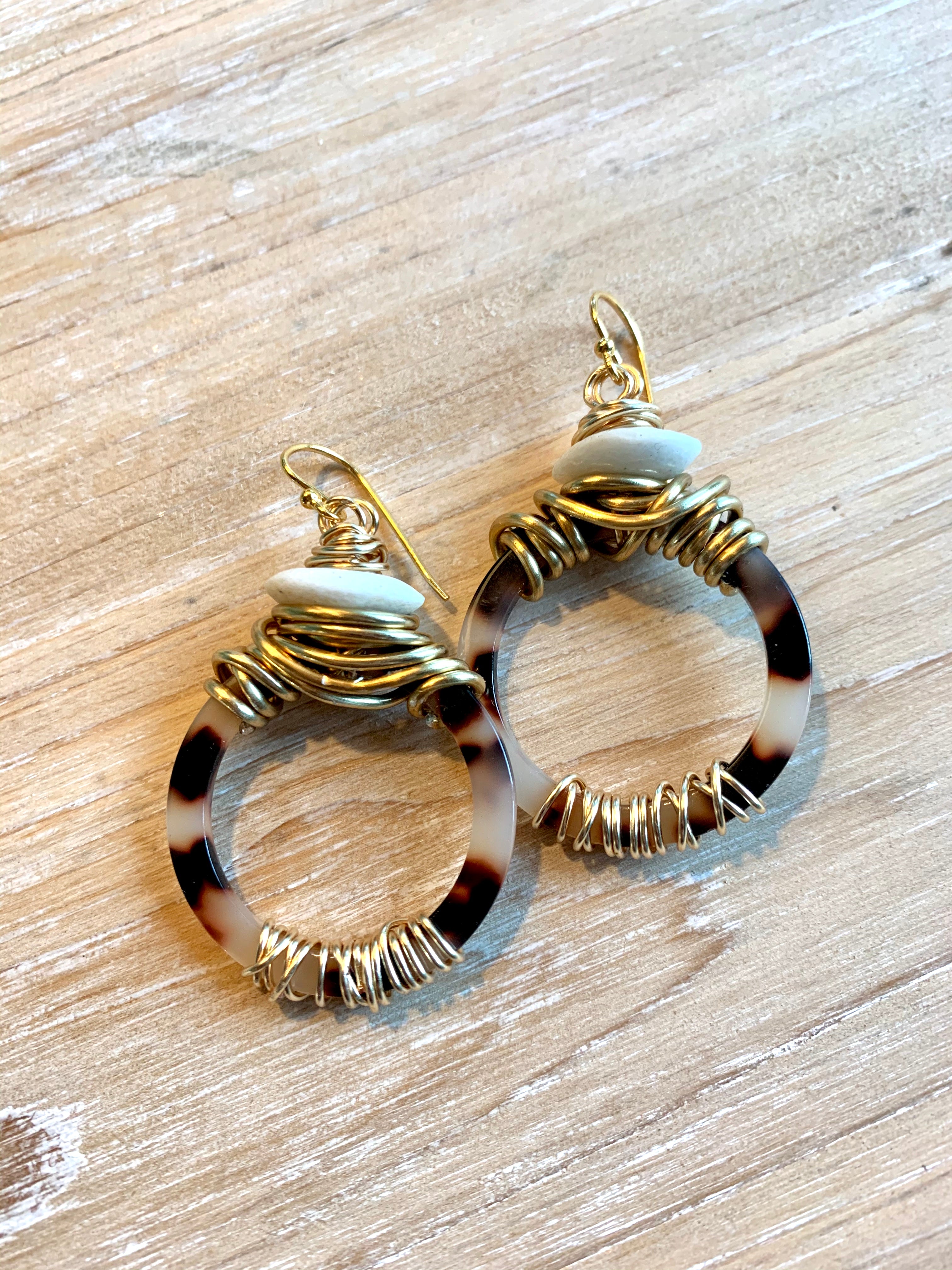 Lightweight, comfortable and the perfect addition to add a little pizzazz to your Fall wardrobe! Hand-wired tortoise hoops + handmade African saucer beads